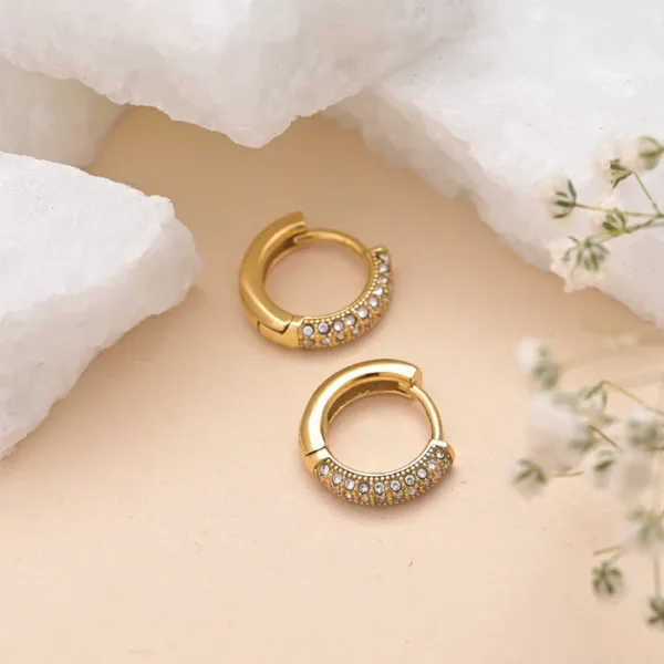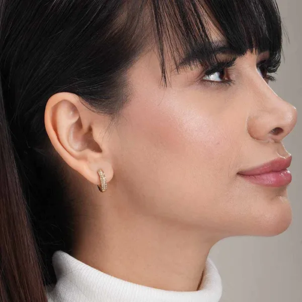 The huggie hoop design sits close to the earlobe, offering a comfortable and secure fit. This versatile style is perfect for both everyday wear and special occasions, allowing you to effortlessly enhance any outfit with a touch of sparkle.
