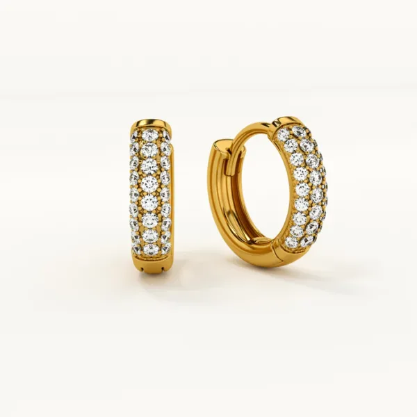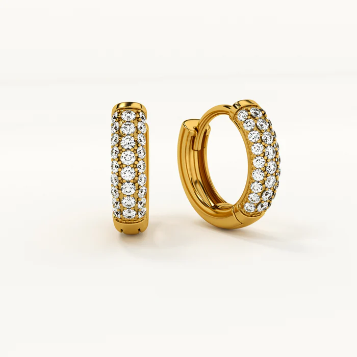 Elevate your style with our Diamond Huggie Hoop Earrings. These earrings are a perfect blend of classic elegance and contemporary sophistication, featuring a sleek hoop design adorned with sparkling diamonds.